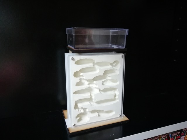 <アリと働きアリ数十匹のコロニーを飼育するための簡単キットです。> <初心者の方や、自由研究などにもオススメします。> 【商品の特徴】 ①小型種~クロオオアリ等の大型種も飼育可能です。 ②石膏巣上部には給水用の穴(10mm)が空いています。付属のスポイトを使って給水してください。乾燥が苦手なアリもいます。冬場は注意しましょう。 ③エサはエサ場ケースに入れてあげましょう。 ④連結用チューブは好きな長さに切って使用してください。 【商品サイズ】 ・石膏飼育ケース 148mm×38mm×118mm ・エサ場ケース 81mm×114mm×40mm 【材質】 石膏、アクリル板、mdf、プラスチック 【付属セット】 ・石膏飼育ケース、エサ場ケース、連結用チューブ(5cm×径10mm)、シリコンゴム栓、スポイト 【商品の状態】 ・ハンドメイド品ですので、多少のキズや 凹凸あります。了解してお買い上げお願いします。(プチプチで梱包発送します) 【ご注意】 ・石膏巣は必ず給水(最初は50ml~100ml)してからご使用ください ・月に1~2回は必ず給水をしてください