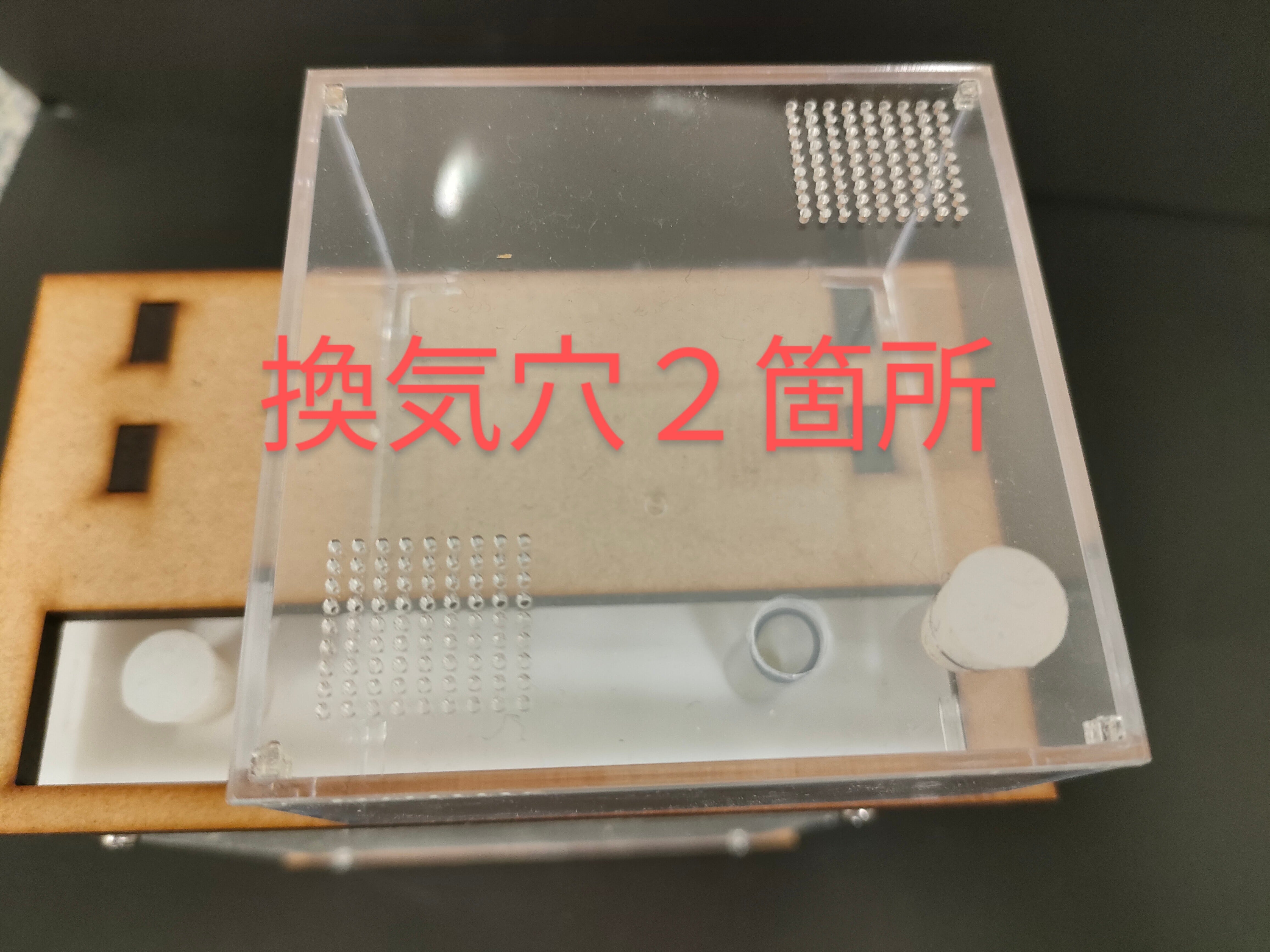 ②石膏巣上部には給水用の穴(10mm)が空いています。付属のスポイトを使って給水してください。乾燥が苦手なアリもいます。冬場は注意しましょう。