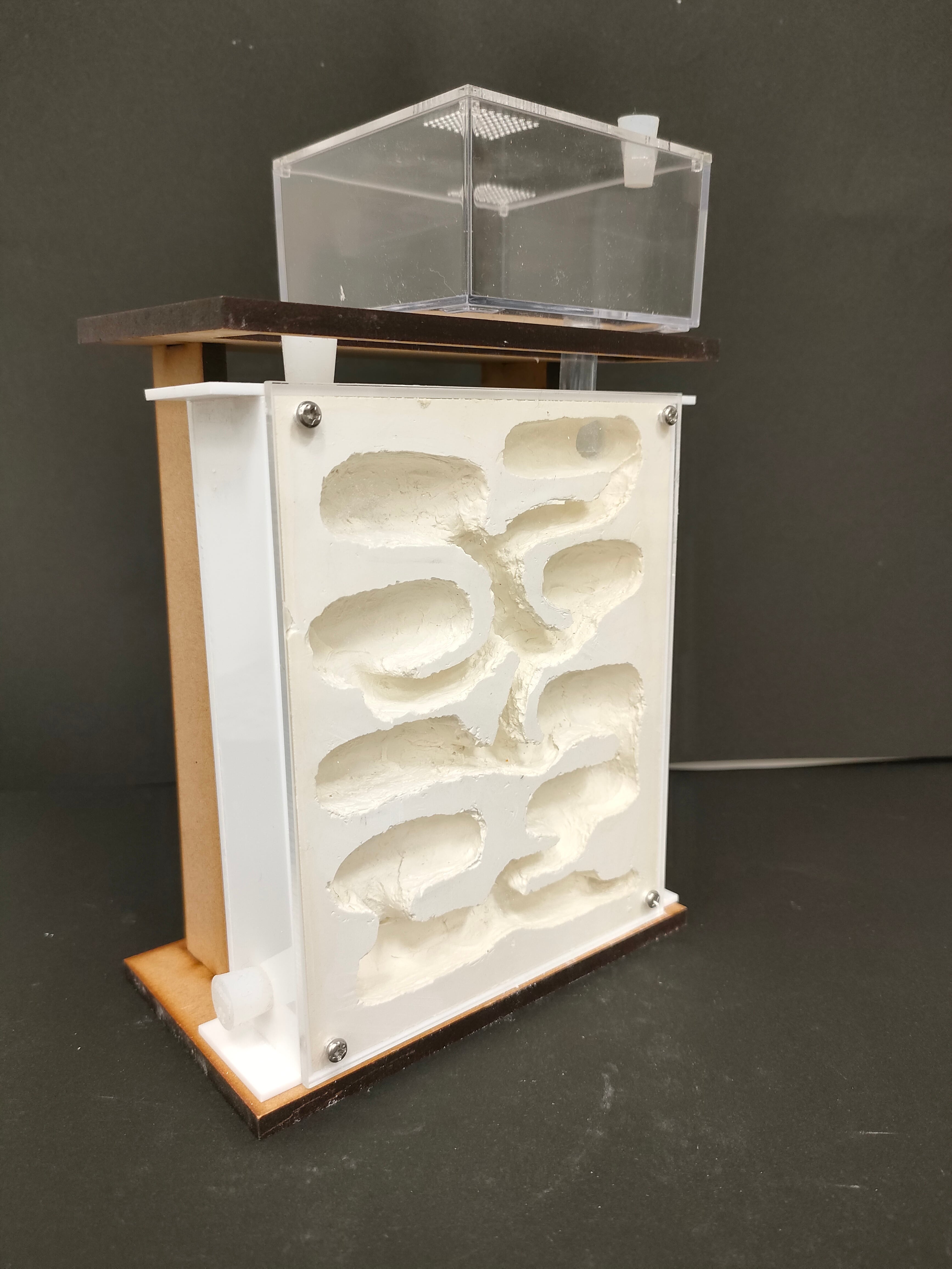 ②石膏巣上部には給水用の穴(10mm)が空いています。付属のスポイトを使って給水してください。乾燥が苦手なアリもいます。冬場は注意しましょう。